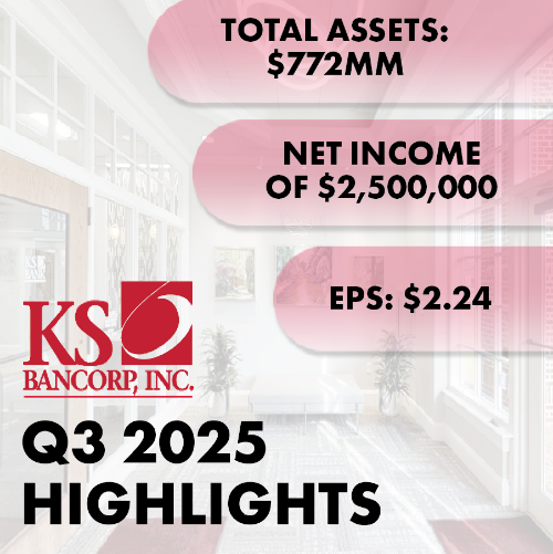 KS Bancorp, Inc., a Delaware corporation, is the holding company for KS Bank, Inc., a North Carolina savings bank. Both the Company and the Bank are headquartered in Smithfield, North Carolina.